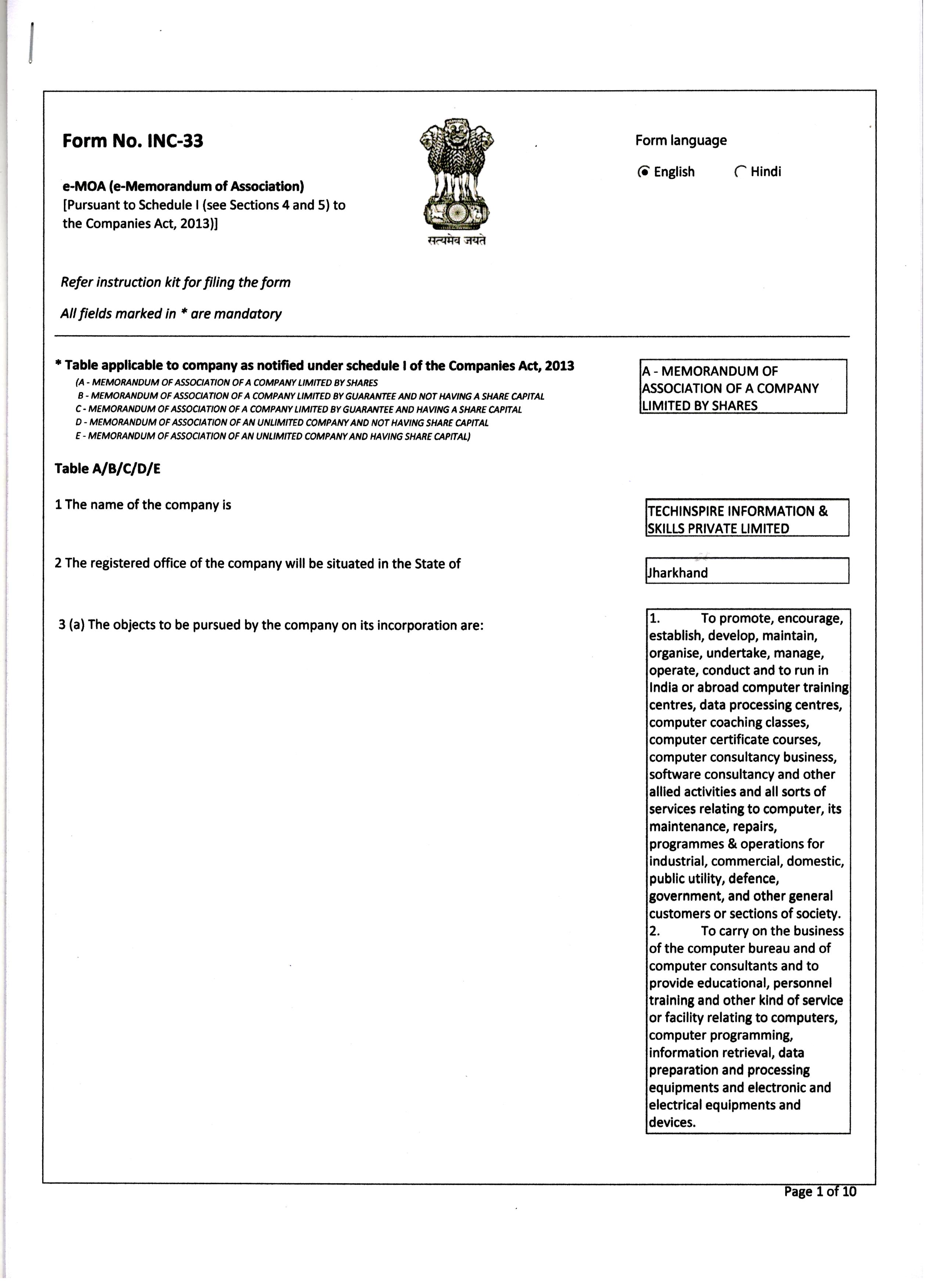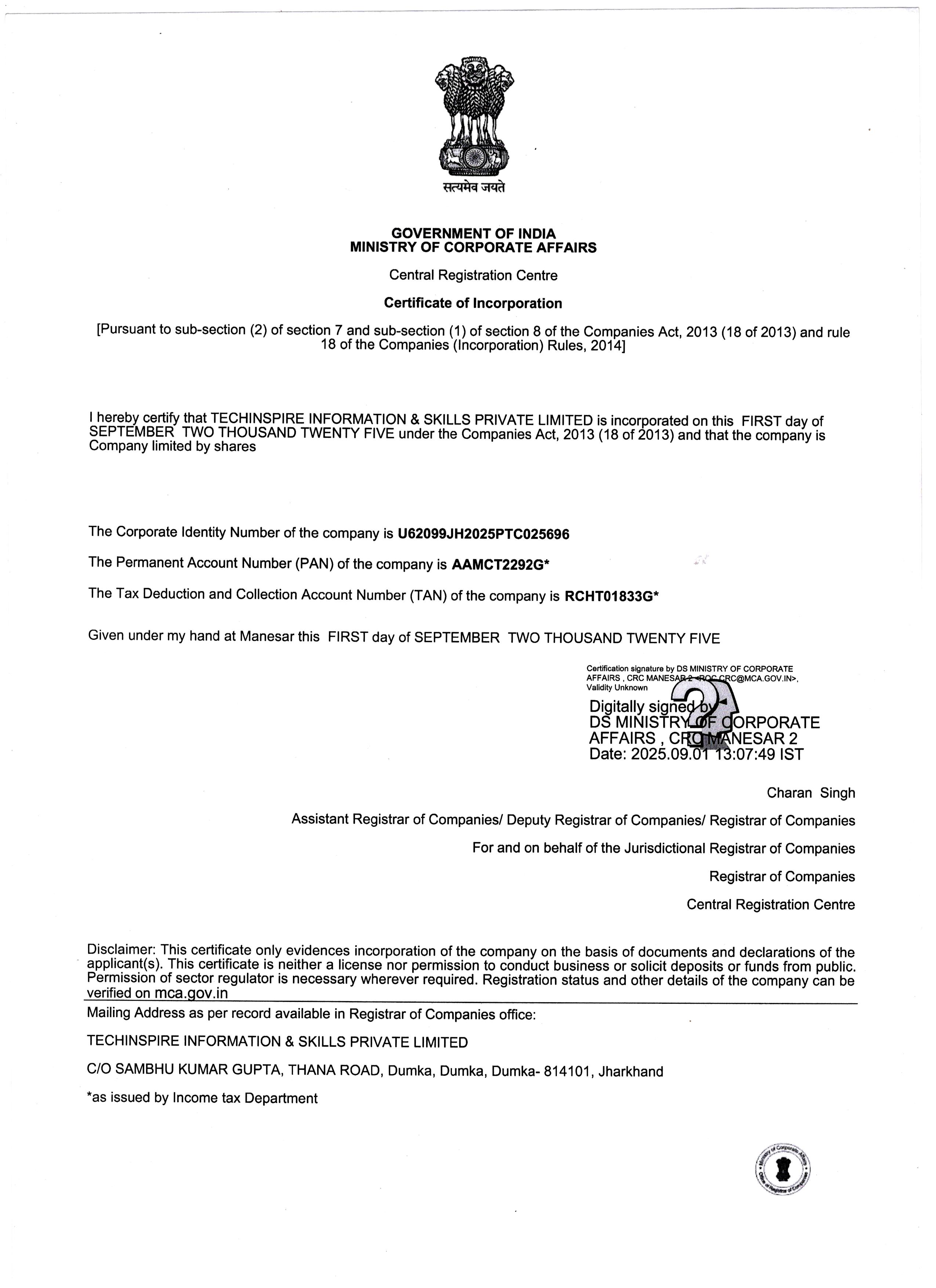 Certificate of Incorporation